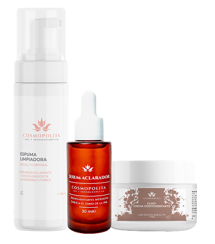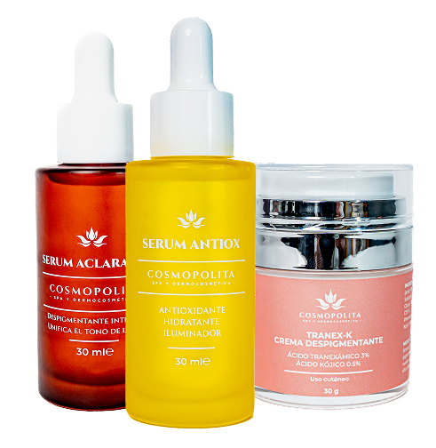 Formulado para tratar melasma, manchas por acné o sol, este kit combina antioxidantes y despigmentantes clínicamente probados. Ideal para unificar el tono y mejorar la textura desde casa.
