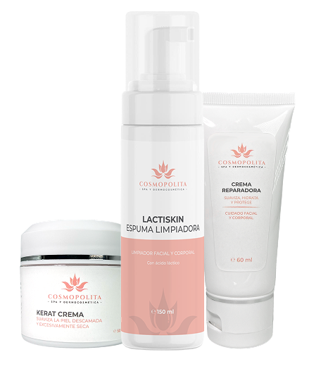 El CosmoLab KeratoSoft Ritual suaviza la piel con queratosis, aspereza o engrosamiento localizado. Combina exfoliantes suaves e hidratantes reparadores para mejorar textura y elasticidad sin irritar.